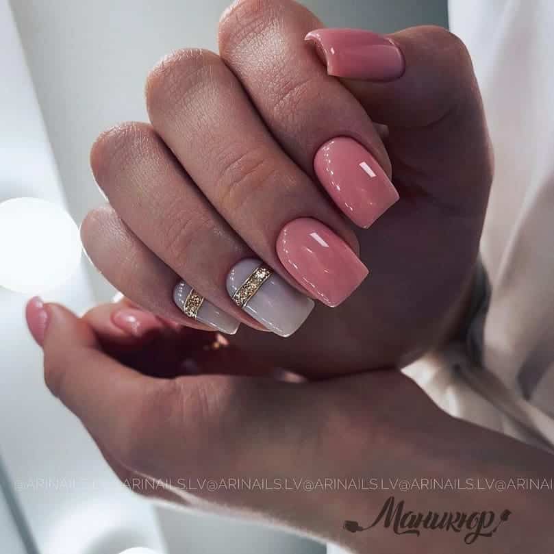Только в этом случае маникюр на форму ногтей «мягкий квадрат» будет смотреться действительно достойно. Как вариант, отлично подойдет вариант с лепкой, а из цветовой палитры, например, постельные тона.