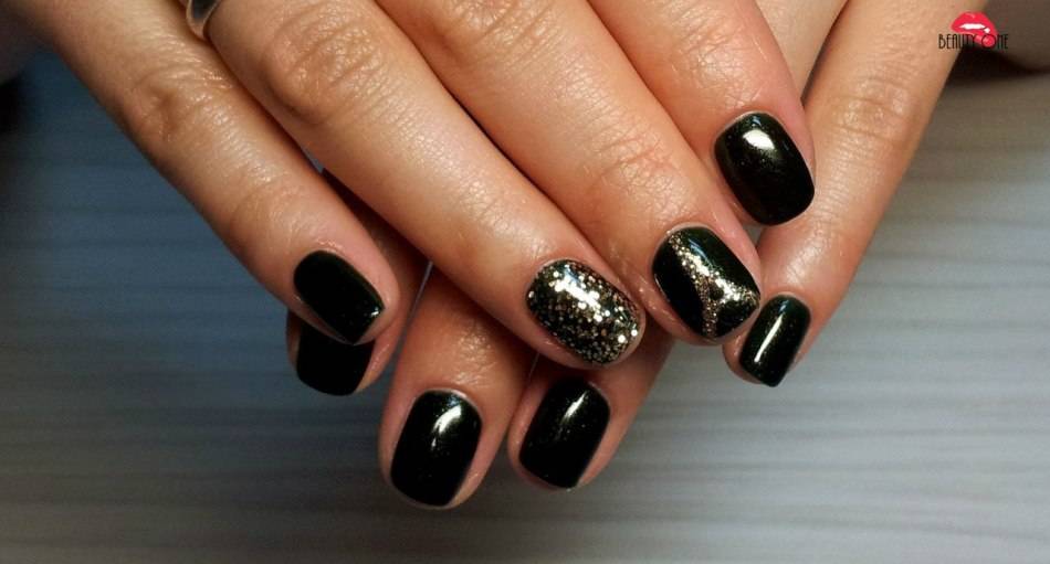 Черные ногти с блестками, фото маникюра