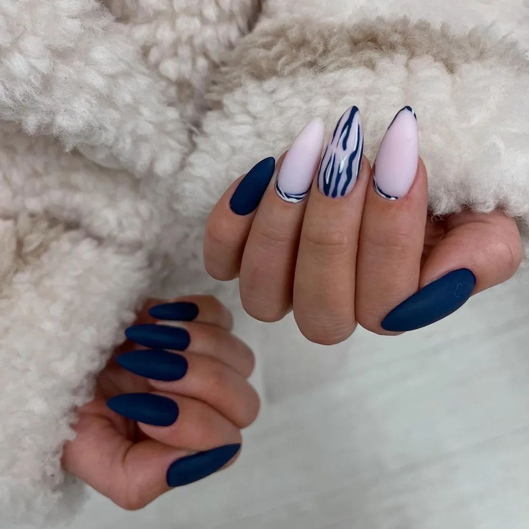 Вместе с модными синими и голубыми акцентами потрясающе будет смотреться фиолетовый лак. Это одна из самых красивых и стильных комбинаций 2020 года!