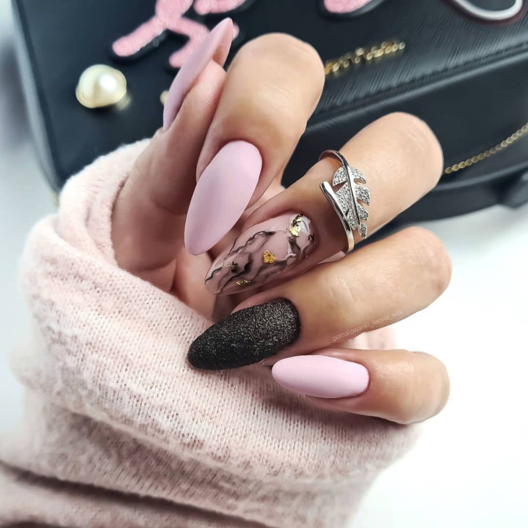 Черный розовый и белые ногти