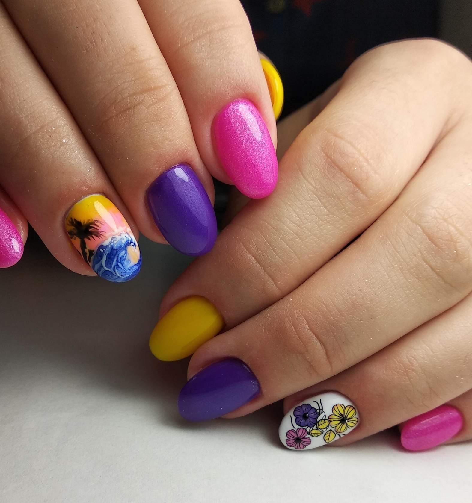 Разноцветные ногти на руках