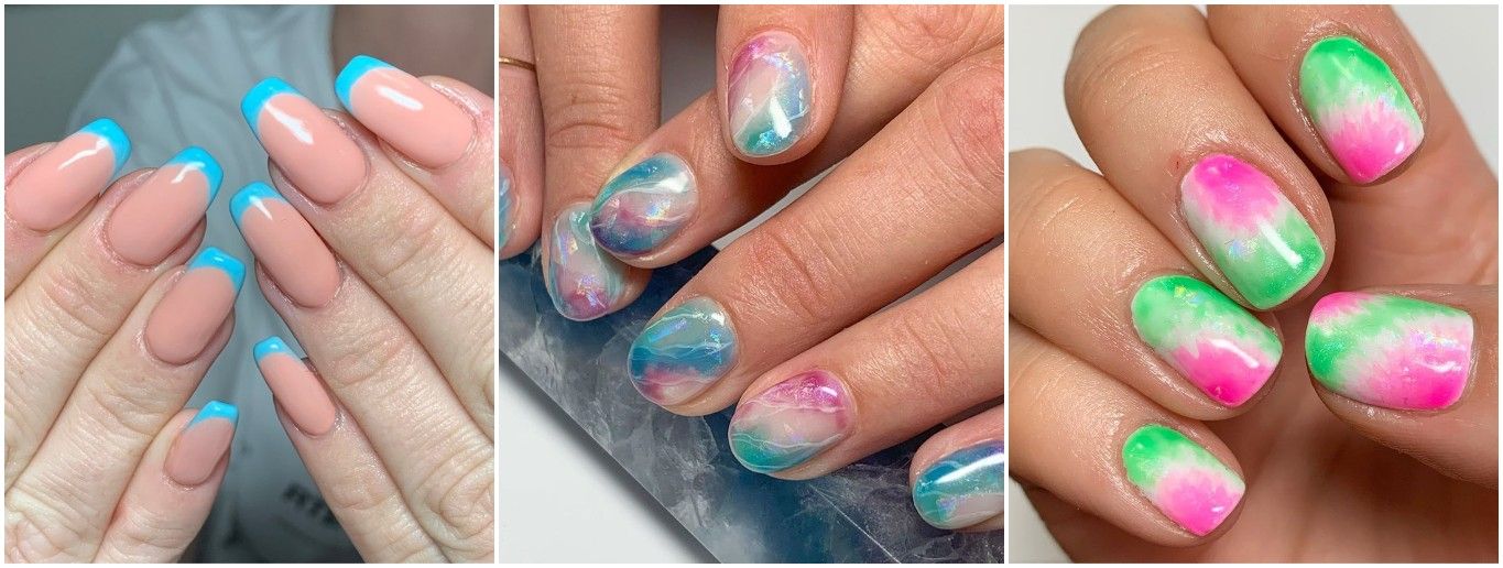 Для летнего маникюра характерны яркие сочные краски. Можно использовать любую технику nail art для создания уникального дизайна. Подойдет абстракция, цветочный принт, градиент, френч и другие стили. Используют пляжные мотивы, фруктовый микс.