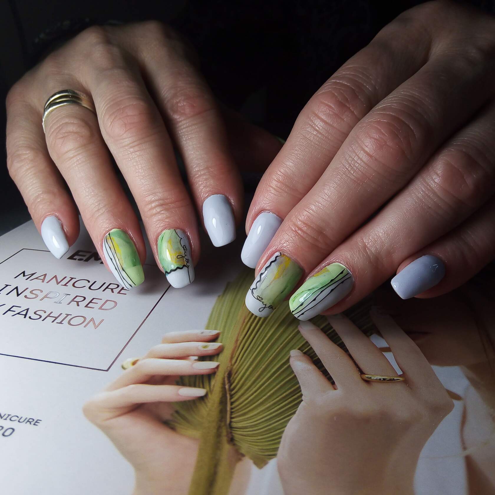 - Простой маникюр с нейл-артом — вариант 2