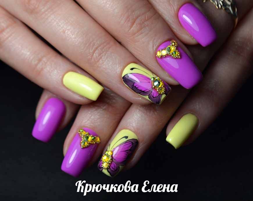 Варианты дизайнерских решений маникюра с изображением бабочек