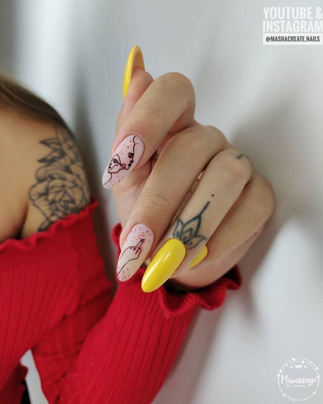 Модные тенденции летнего маникюра сезона 2020 представлены красивыми идеями дизайна с силуэтами. Этот оригинальный дизайн ногтей особенно актуален в матовом исполнении. Маникюр с рисунком красивого женского облика появился относительно недавно и бьет все рекорды популярности в этом сезоне.