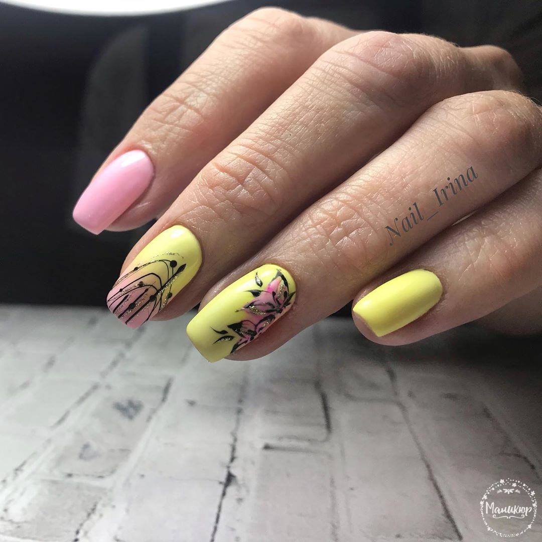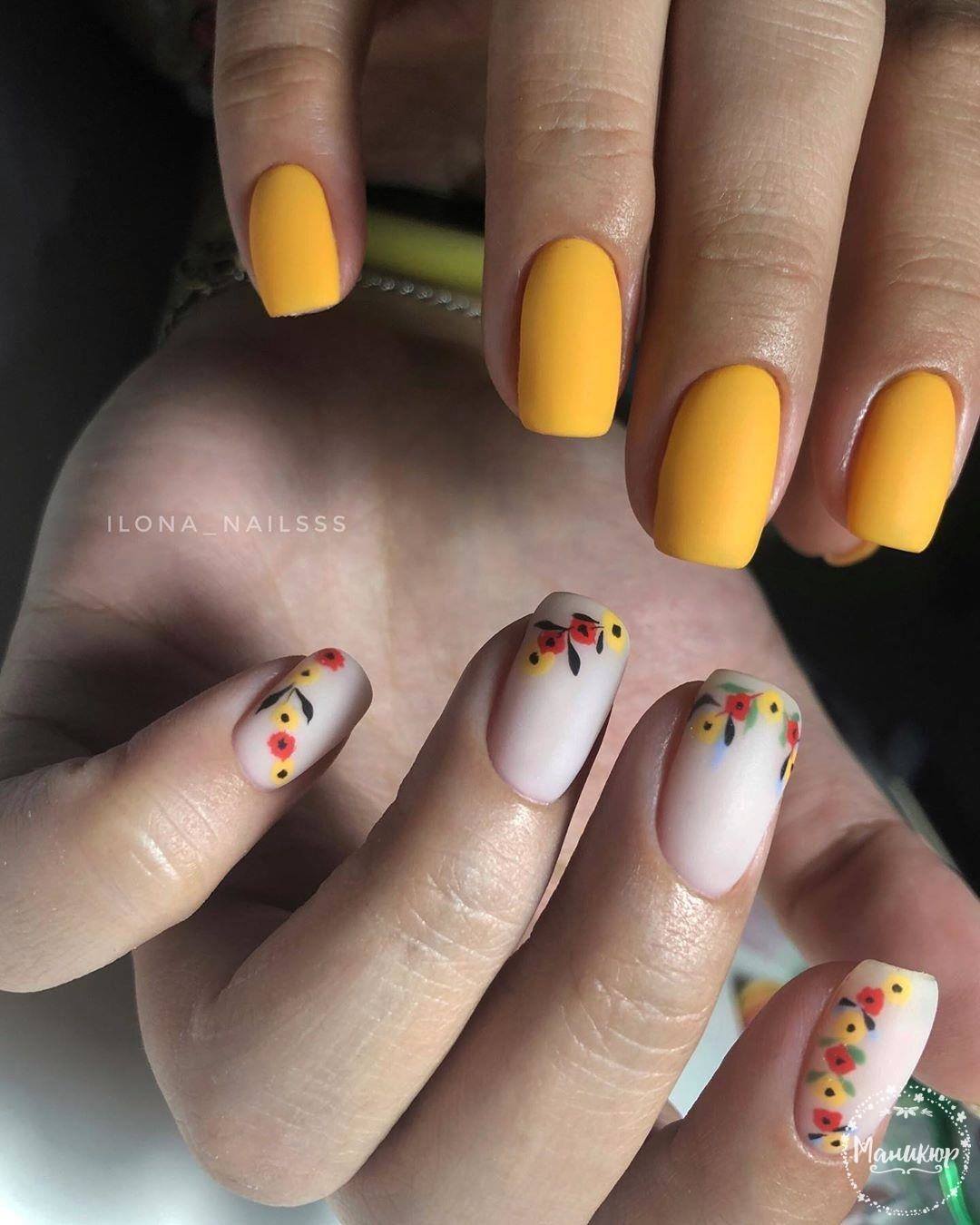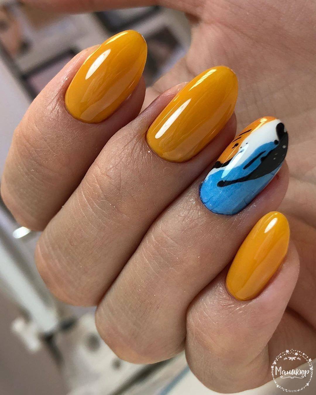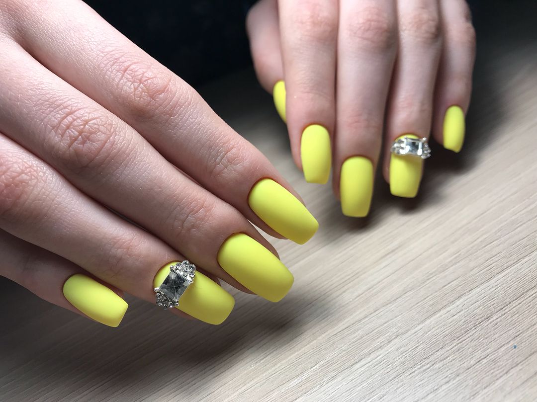 Этот красивый летний цвет сделает ваш маникюр по настоящему летним и таким красивым. Желтый маникюр сочетается и с камнями, и с блестками, и с камифубуки, и с втиркой и другими видами дизайна ногтей в 2020 году.