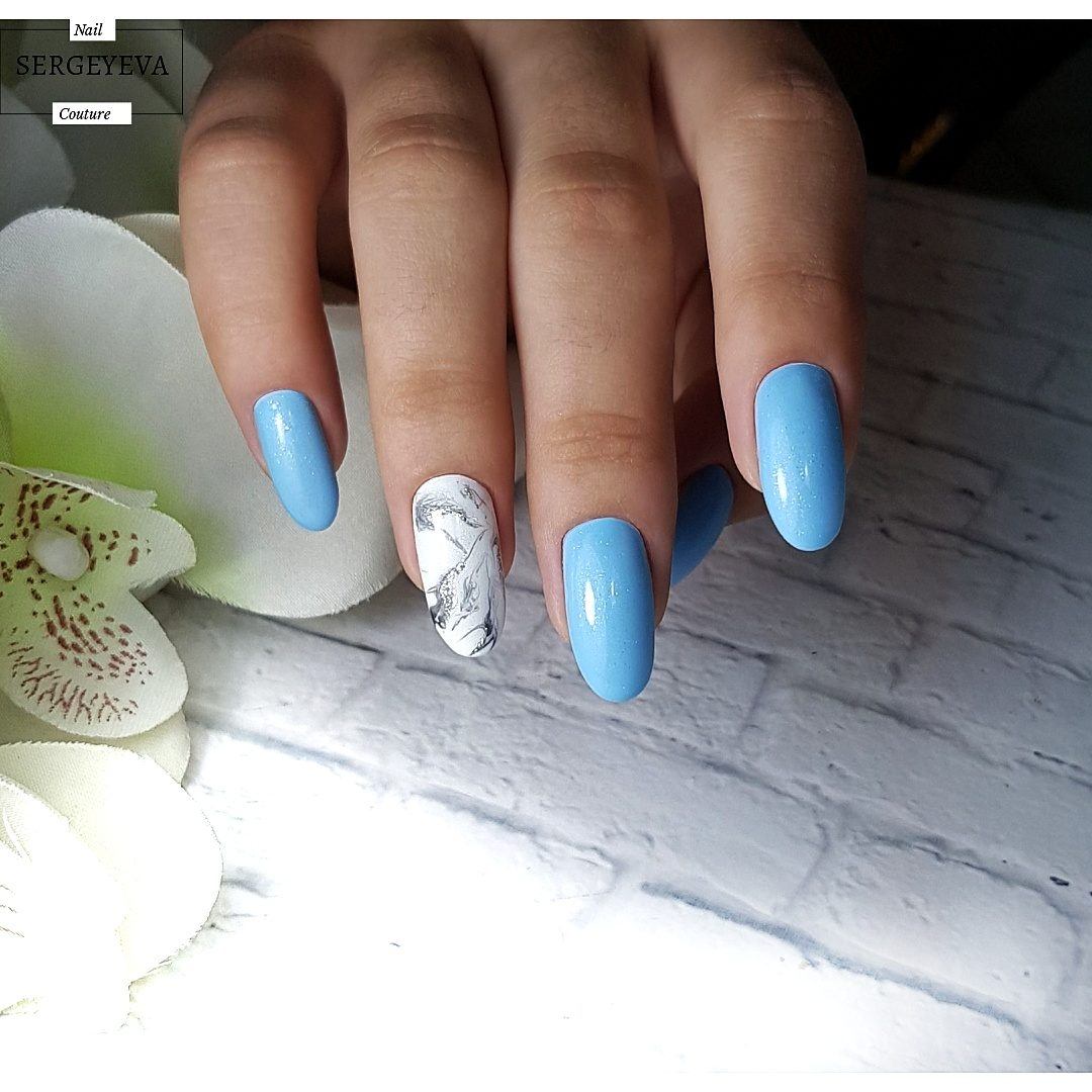 Светло-голубой маникюр будет прекрасным дополнением летнего образа, он может быть в монотонном исполнении, а может быть украшен рисунком, блестками, фольгой, полосками и другими элементами декора в 2020 году.
