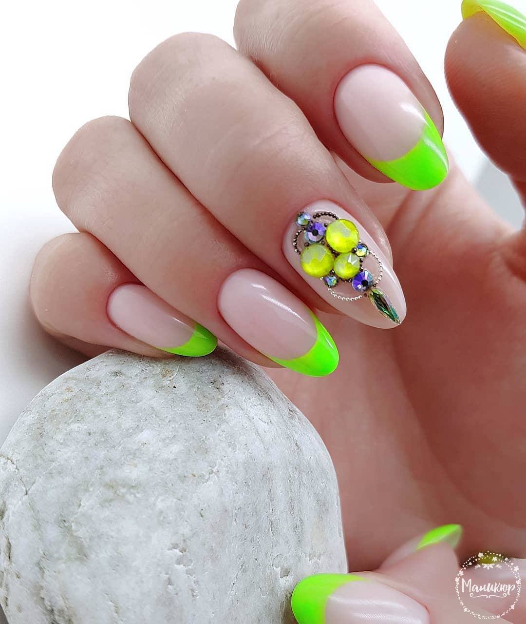 Лето 2021 — это период зеленого цвета. Больше всего здесь будет ценится изумрудный, который отличается богатством и насыщенностью цвета. Это лучший вариант маникюра, который сможет подойти к белой и темной коже.