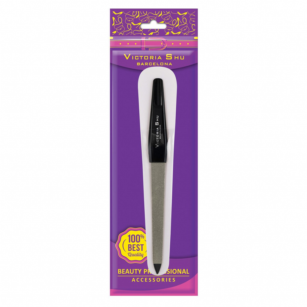 Это узкая металлическая пилка для ухода за пластинами на пальцах и ногах. Она имеет оригинальную форму и две рабочих поверхности довольно высокой степени жесткости. Благодаря такому напылению, ею можно спиливать и натуральные, и искусственные ногти. Данная модель берет их даже на ногах.