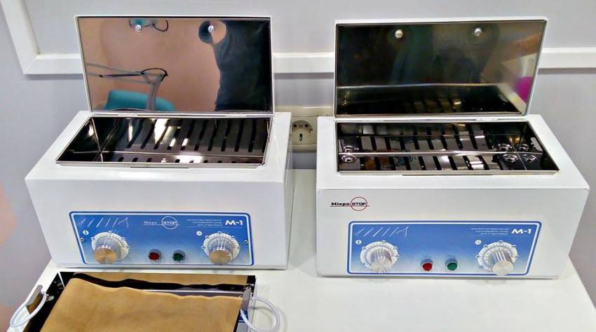 Для стерилизации инструментов в маникюрном салоне можно использовать несколько разновидностей стерилизаторов, которые разрешены по нормам СанПиН 2.1.2.2631-10, СанПиН 2.1.3.2630-10 :