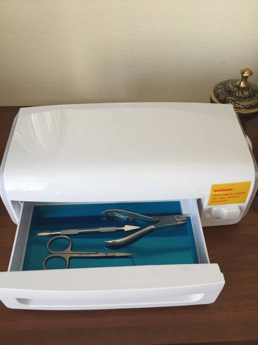 Для хранения уже простерилизованных открытых инструментов можно использовать УФ-стерилизатор, там они пролежат до 3-х дней, далее процедуру рекомендуется повторить. Маникюрные инструменты помещаются в него открытыми на перфорированных подносах. По нормам СанПиН манипуляции выполняются в перчатках.