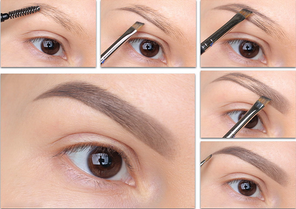 Пошаговое выполнение макияжа бровей выглядит следующим образом: