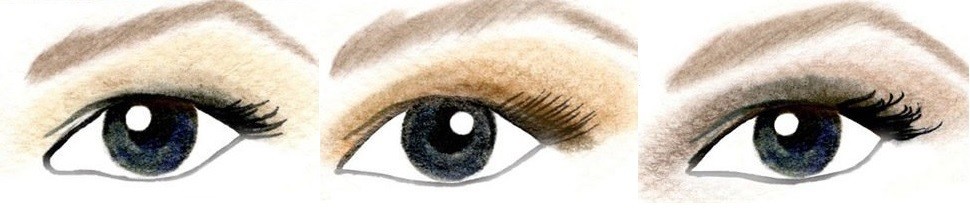 Так с помощью трех оттенков теней можно создать эффектный макияж для нависшего века.