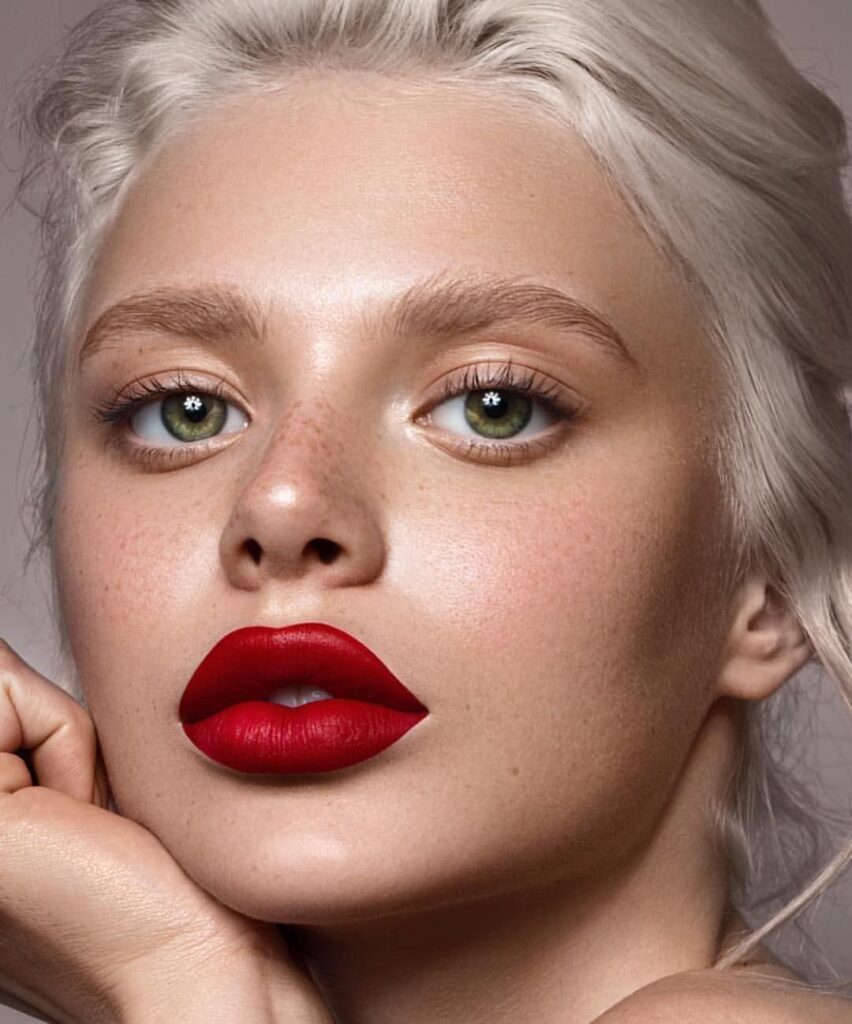 Волосы с низким уровнем темного пигмента эумеланина в природе встречаются не слишком часто, поэтому натуральной блондинке будут завидовать и пытаться подражать всегда. Палитра оттенков блонда поражает своим разнообразием. Из салонов красоты женщины зачастую выходят не с чистым цветом ?️, а с пшеничным или серым отливом. Для таких волос не подойдут ягодные и винные губные помады. Лучше купить красный оттенок, похожий на цвет перца чили.