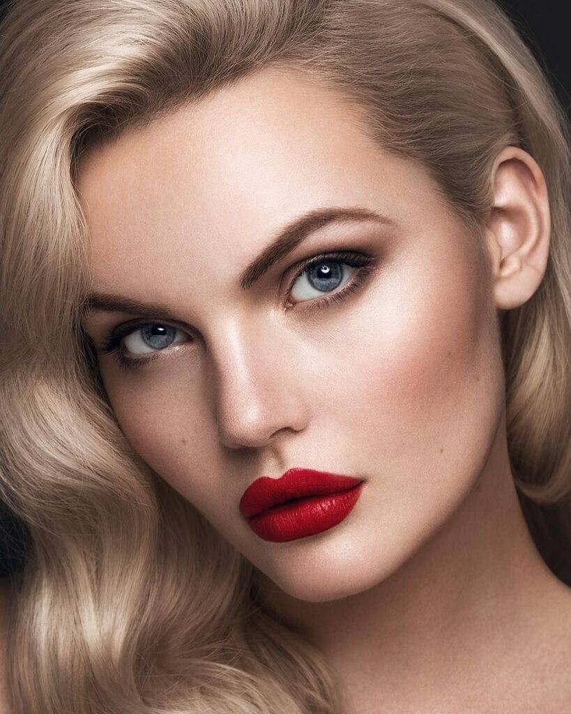 Макияж с красной помадой для блондинок