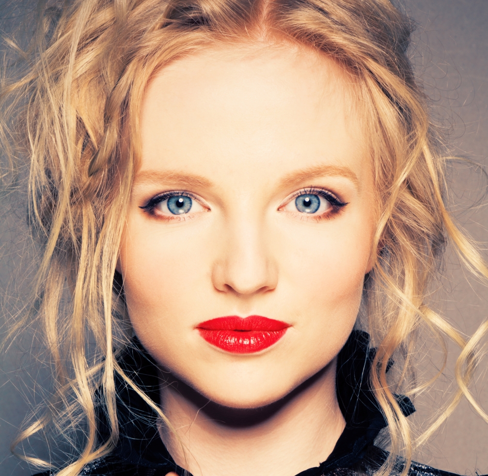 Красные губы притягивают взгляд, поэтому макияж глаз может быть очень естественным и натуральным. На фото хороший пример естественного макияжа с красной помадой.