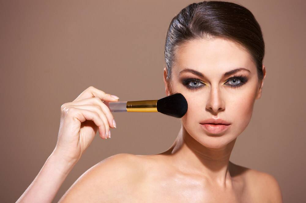 Наибольшую роль в коррекции формы лица играют корректирующие румяна. Чтобы визуально вытянуть лицевой овал, румяна накладываются на выдающиеся участки скул. Кисть при этом должна совершать растушевочные движения, направленные вниз. Тон румян, как и тон корректора, подбирается таким образом, чтобы он был темнее натурального цвета лица.