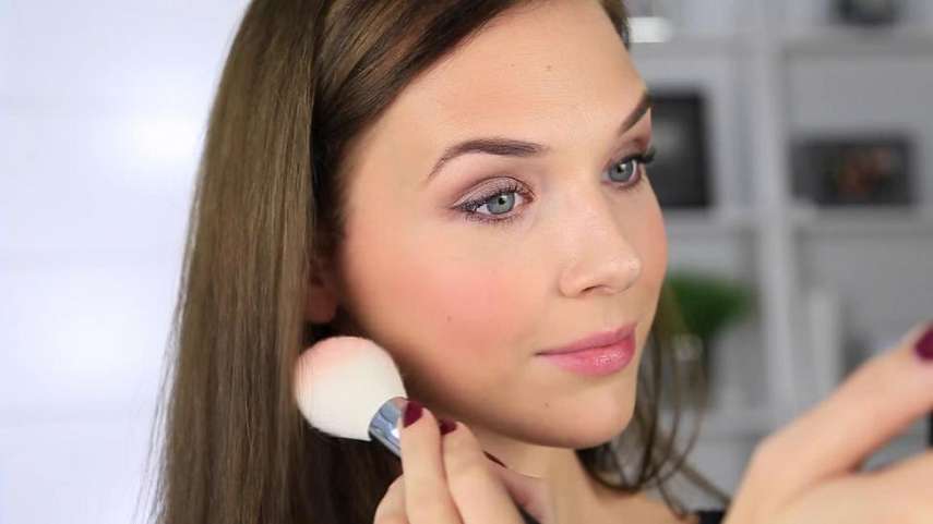 Персиковый, белый, коричневый цвет – то, что нужно для создания такого макияжа. Допускается отказ от подводки. Румяна должны быть теплого цвета, а тушь – черного. Создать подобный макияж очень просто:
