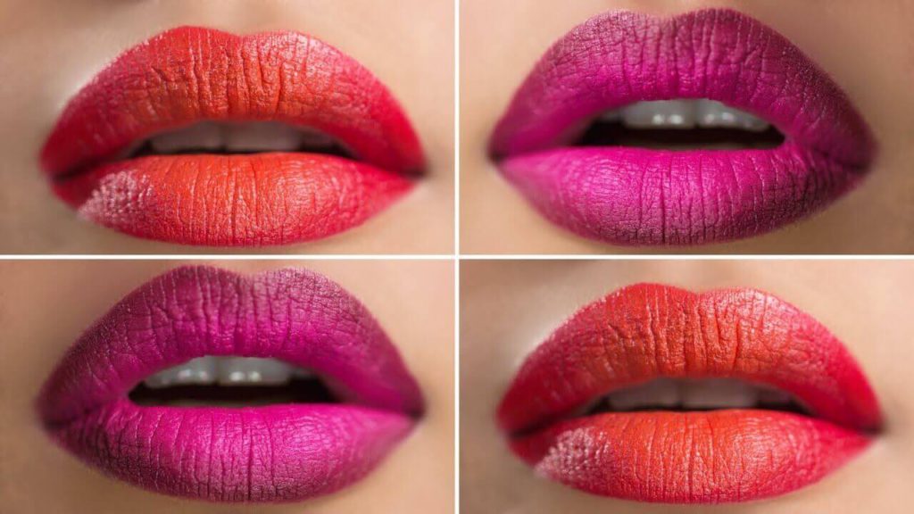 Омбре – переход цвета. Нарисуйте контур губ, затем возьмите две помады разных тонов, отличающихся между собой на несколько тонов. Наносите сначала более темную помаду по всей поверхности губ, а затем более светлую помаду на центральную часть губ, растушевав границы. Таким образом, у вас получится плавный переход от одного цвета к другому. Завершите образ, добавив на осветленную часть губ немного блеска. Технику омбре можно реализовать с использованием любых оттенков, однако, наиболее подходящая помада для этого варианта – матовая, красная.