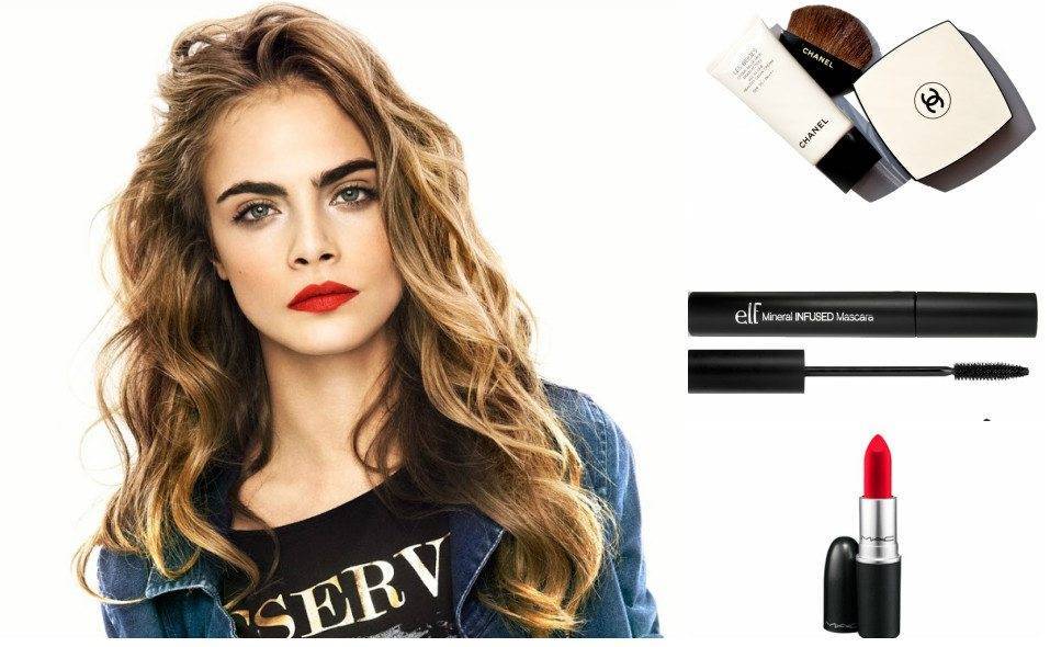 Черная тушь, тени для бровей, качественный тональный крем, румяна, матовая пудра и алая помада – это необходимые вещи, без которых не удастся создать эффектный макияж в стиле Кары Делевинь.