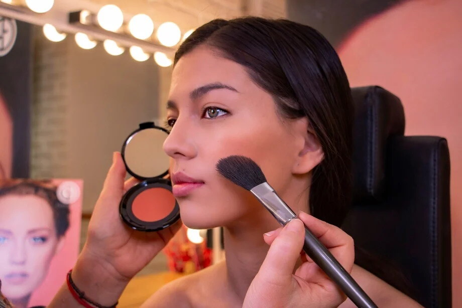 - Девушкам с темным оттенком кожи лучше воспользоваться бронзирующей пудрой. Пудру также распределяют по лицу, а для придания особого шарма немного подчеркивают ей скулы и веки.