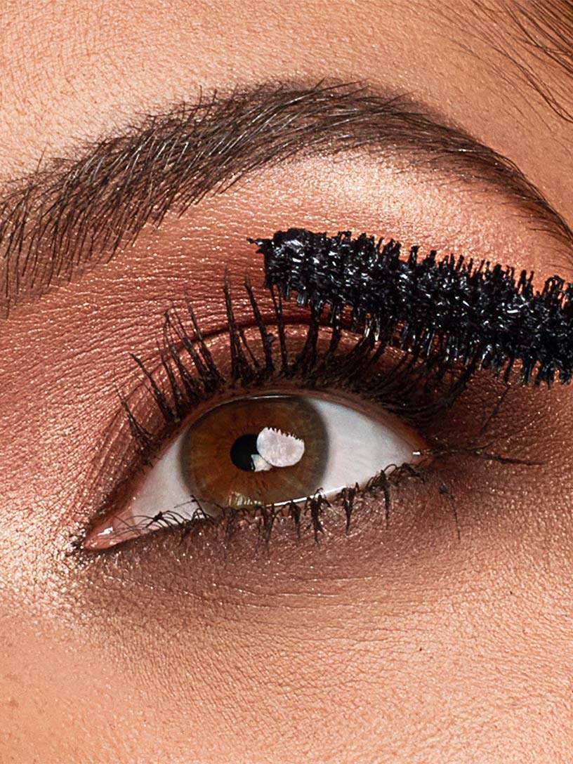- Завершает макияж глаз тушь. Ее нужно умело нанести минимум в два слоя. Перед нанесением реснички припудриваются.