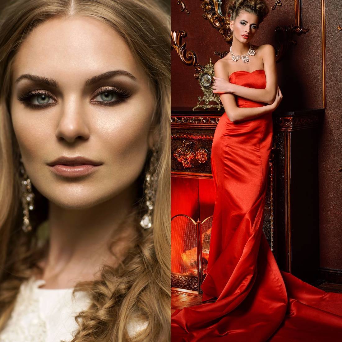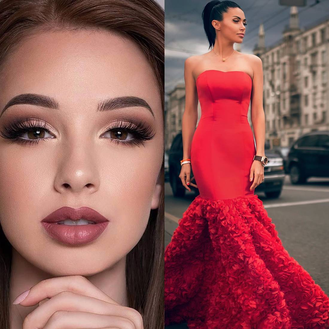 Макияж под красное платье для девушки с русыми волосами – фото: