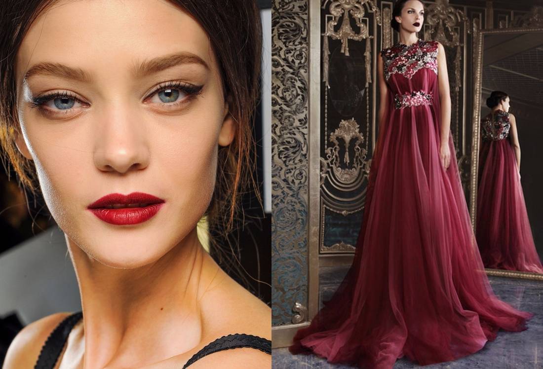 Более смелые и уверенные девушки используют в макияже губ градиентные помады от черного к красному и яркие алые, которые повторяют цвет наряда. Желательно, чтобы цвет помады совпадал с цветом платья (хотя это касается не всех цветотипов) или был более насыщенным, но не слишком ярким.