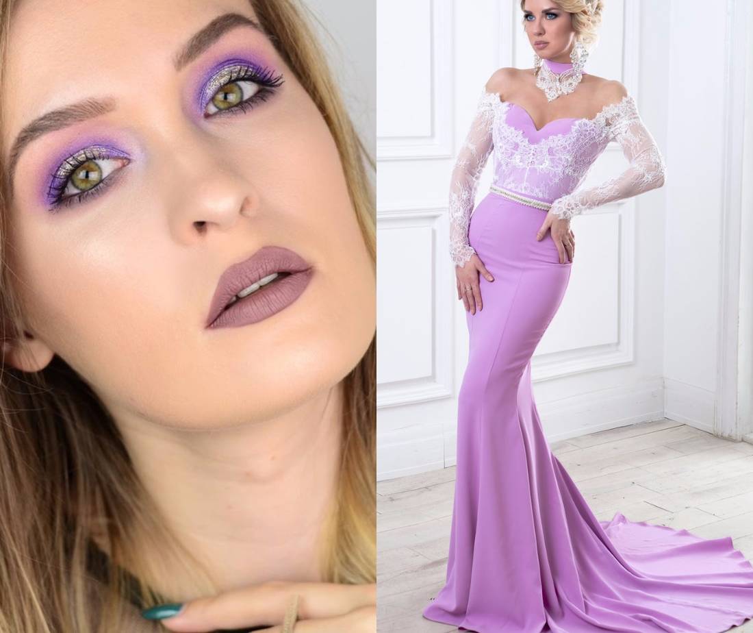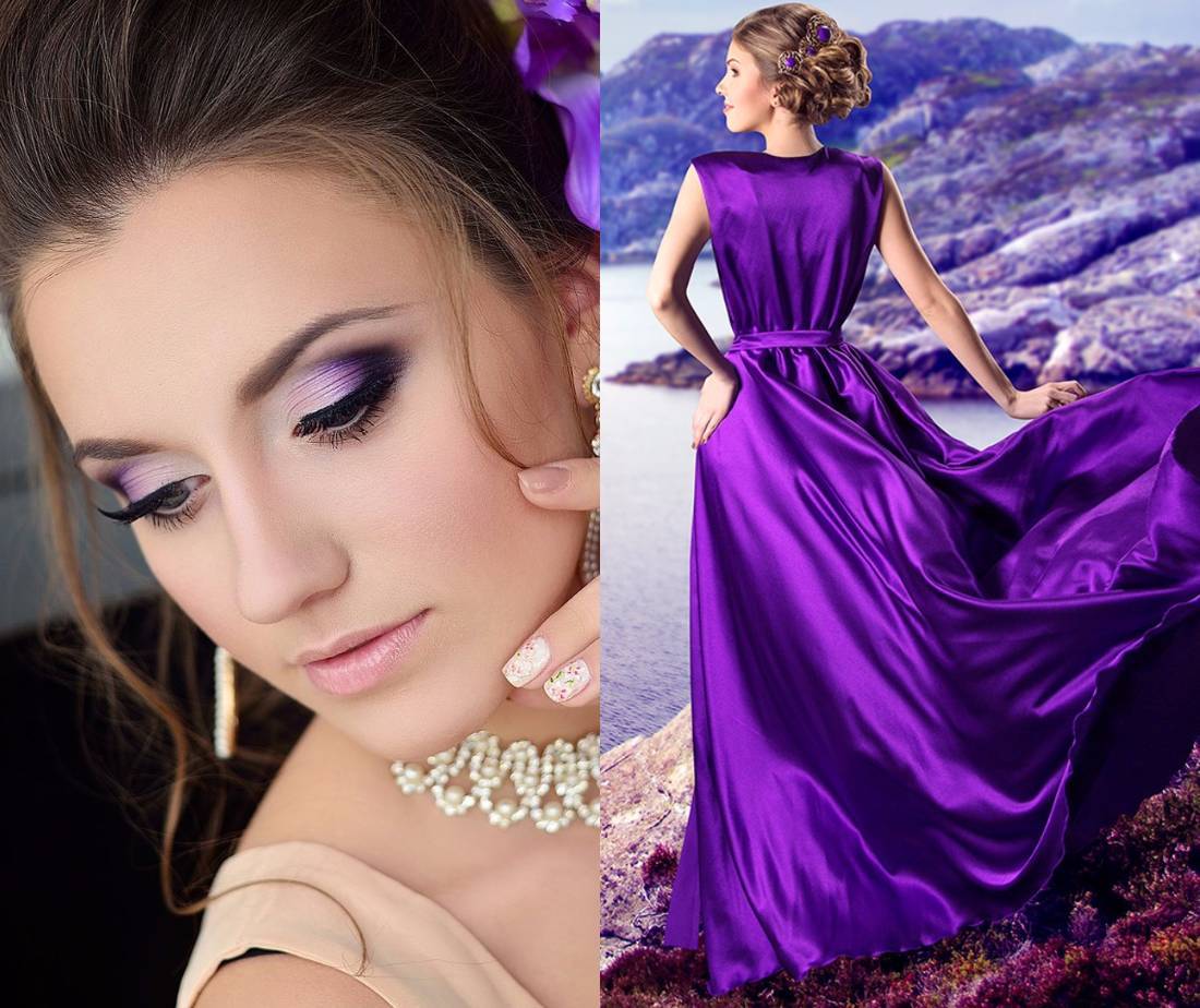 Девушкам, которые имеют кожу естественных тонов, рекомендуем воспользоваться такими цветами теней, как цвет винограда или сливы. Такой яркий макияж глаз можно скомпенсировать с помощью очень светлого блеска для губ. А вот представительницам темных тонов кожи предлагаем использовать тени и подводку цвета сливы. Сливовые оттенки очень выгодно подчеркнут не только цвет фиолетового платья, но и цвет кожи. Что касается губ, то лучше всего подойдет прозрачный блеск или блеск розового цвета.