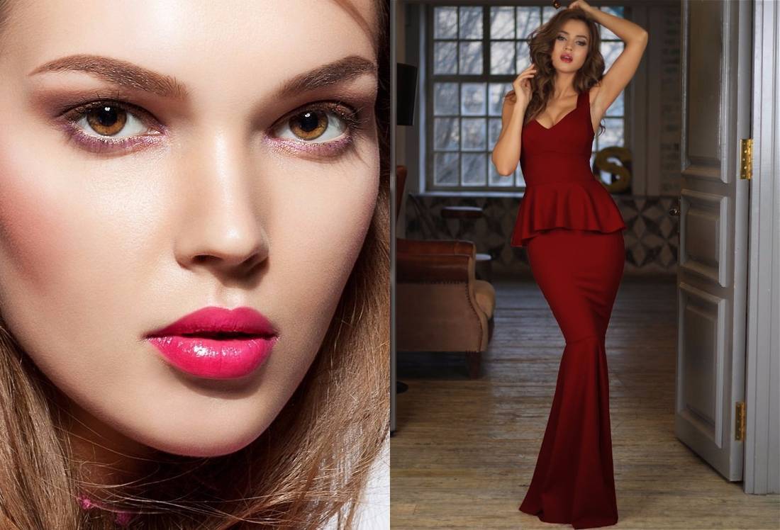 Бордо – благородный и аристократичный цвет. Если вы выбрали наряд цвета бордо, make up в броских оттенках или макияж в стиле нюд – не лучший вариант.