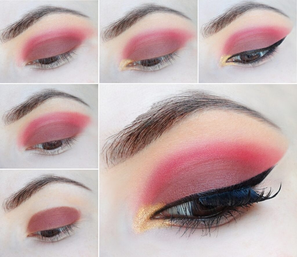 Макияж с подводкой обязательно начинается с нанесения теней. Тени выполняют функцию базы и позволят лайнеру ровно лечь. Чтобы понять технику, как нарисовать стрелки, даём поэтапную инструкцию.