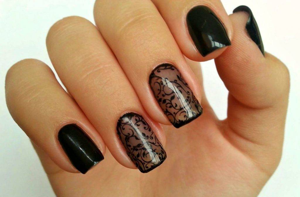 Маникюр чёрная вуаль встречается в этом сезоне довольно часто. Женщины носят его не только на какие-то праздничные мероприятия, но и в повседневной жизни. И это не удивительно. Это раньше вуаль требовала определённого наряда. Сейчас же она распространена повсеместно. На известнейших китайских сайтах продают даже спортивные шапки с вуалью. Но дизайнов этого вида маникюра огромное множество.
