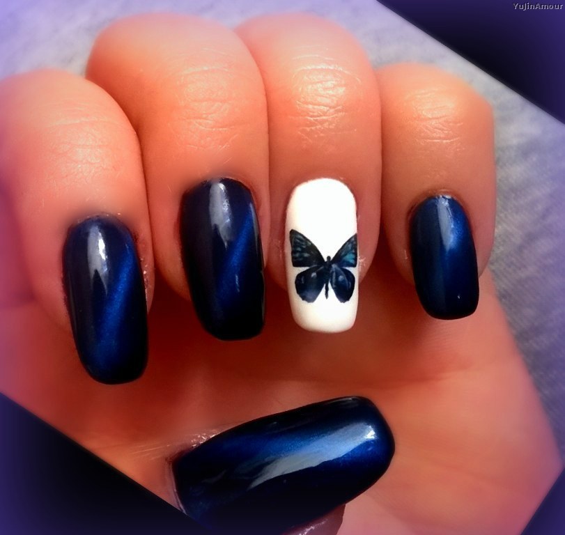 Отличный маникюр в синем цвете подойдет для любого сезона и события. Переливы добавят синему благородного вида и особого шарма. Особенно это касается темных оттенков. Синий маникюр любого оттенка, но с эффектом «кошачий глаз», отлично будет гармонировать с любым нарядом и украсит даже короткие ноготки. Эффектно смотрится и матовое однотонное покрытие без дизайна.