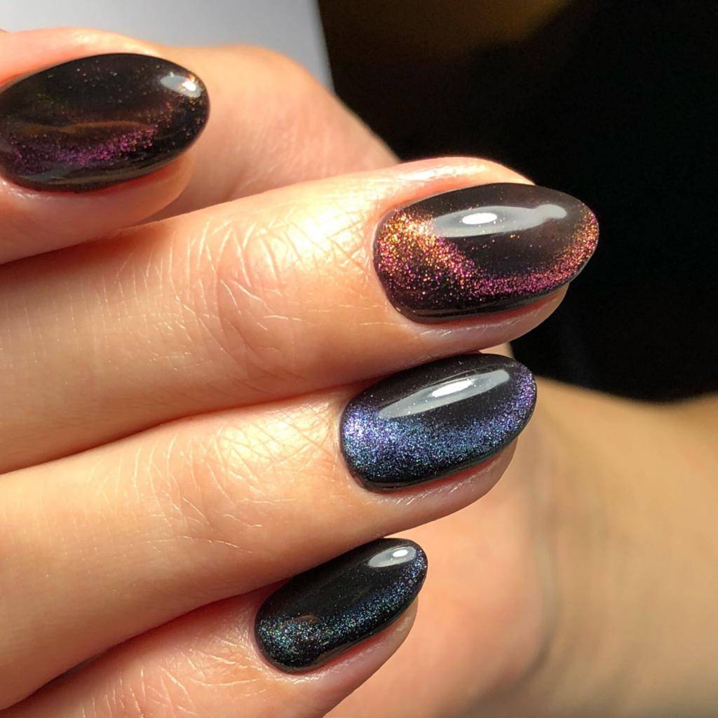 Если учитывать частоту использования темных оттенков на ноготках отечественных и зарубежных знаменитостей, то их нахождение в тренде становится очевидным. А присутствие в маникюре «кошачьего» перелива только подчеркнет намерения модницы выглядеть по всем требованиям тренда.