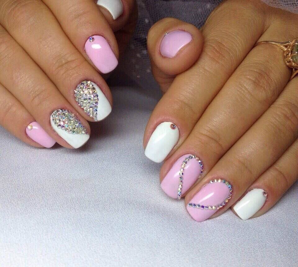 Оформление стразами и блестящим песком добавит шарма и лоска. Стоит взять на вооружение эту модную тенденцию.