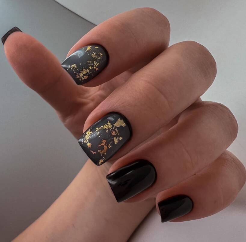 - Комбинированный дизайн ногтевых пластин с разным металлическим покрытием;