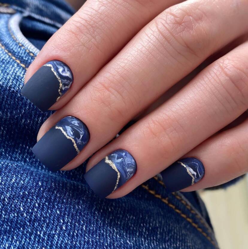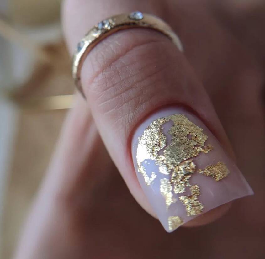 Трендом сезона 2022 будет также маникюр с металлизированным покрытием (фольга, поталь, сусальное золото). Цвет металла может быть совершенно разным, на усмотрение мастера. Сейчас применяются разные варианты, но самыми популярными на сегодняшний день являются:
