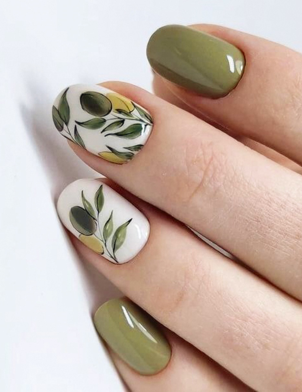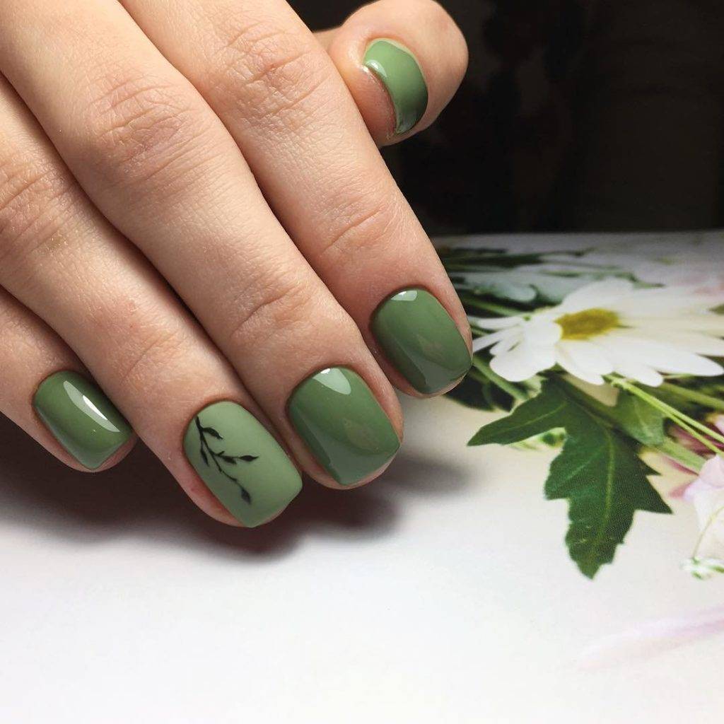 Весенние зеленые ноготки – это всегда что-то нежное и романтичнее. В сезон, предшествующий лету, впишется оливковый, салатовый и болотный цвета. Не обойтись и без флористических мотивов: