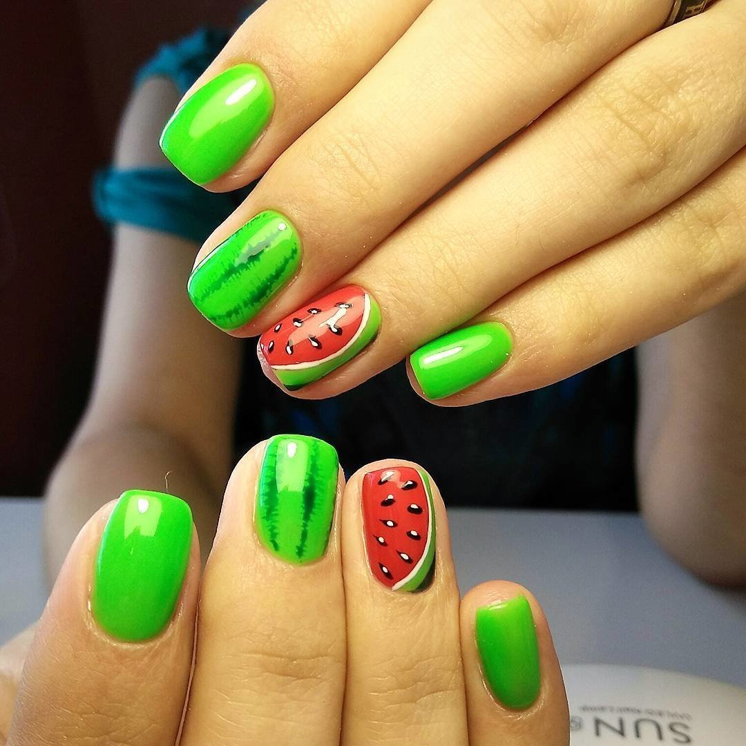 Лето — самое время для яркого и необычного нейл-арта на короткие ногти в стильной морской тематике, тропической, с модными рисунками фруктов и ягод.