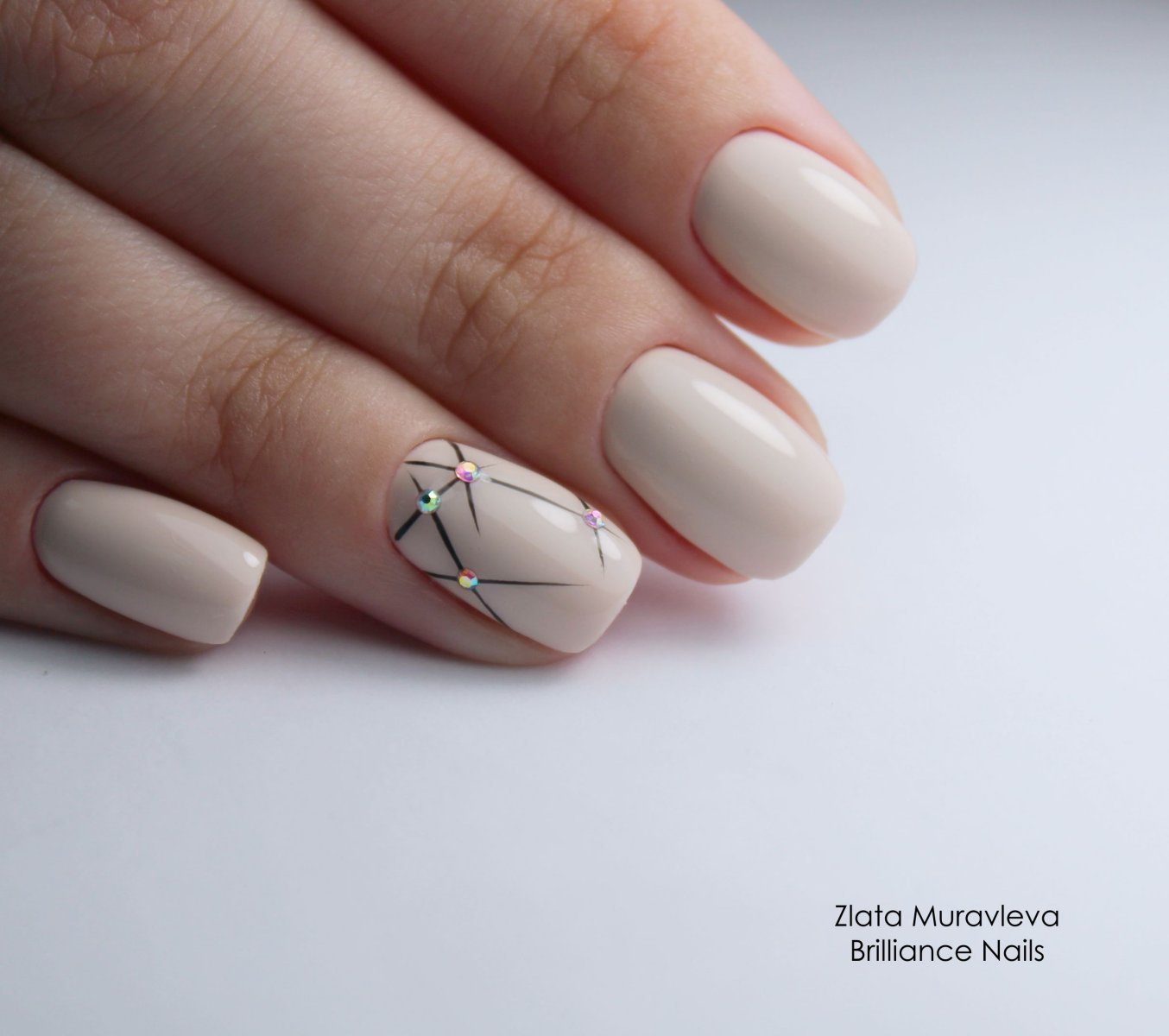 #5 Нежный маникюр с рисунком минимализм на короткие ногти 2020