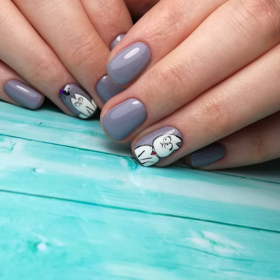 Маникюр в серых матовых тонах с рисунком мазки.