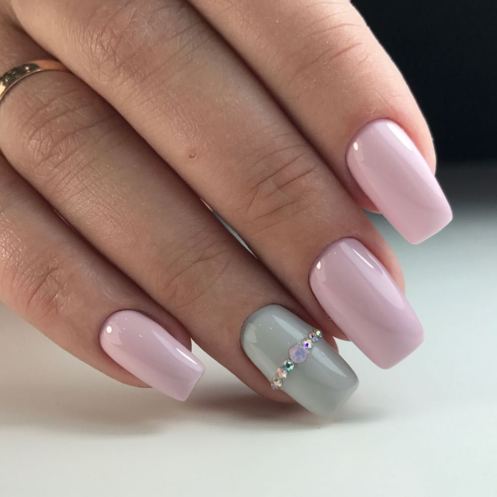 Выигрышно смотрятся розовые оттенки на коротких ногтях квадратной формы.