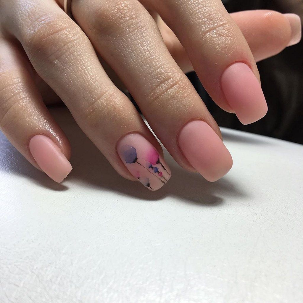 Матовый гель лак, надписи, акварельные рисунки всегда в тренде.
