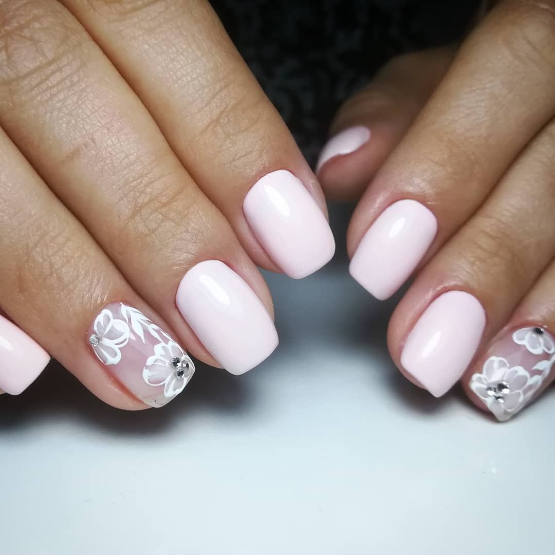 На коротких квадратных ногтях отлично смотрится м аникюр в розовых пастельных тонах.