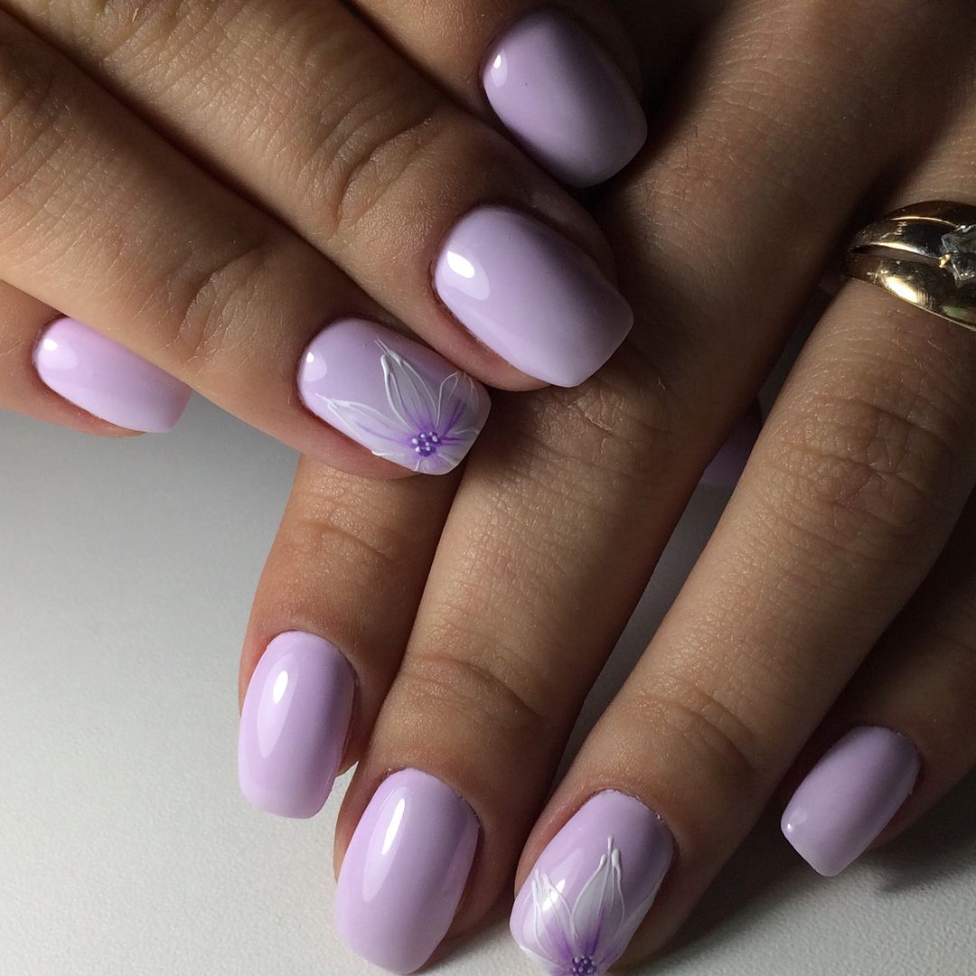 Нежные оттенки идеально подходят для коротких ногтей, поскольку они оптимальны в повседневной носке и хорошо сочетаются с любой одеждой. Лиловый, сиреневый, бледно-розовый, кремовый и другие цвета будут прекрасным фоном для тонких рисунков черным или белым лаком.