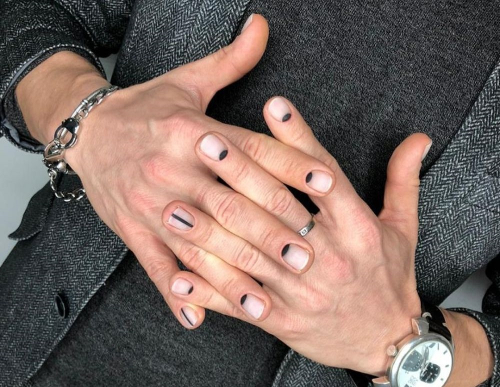 На наших глазах гель-лаковое покрытие становится популярным и у мужчин. Некоторые из них позволяют себе дизайн с надписями и черный матовый гель-лак на минимальной длине. У большинства наших сограждан это пока вызывает отторжение, но следует заметить, что стилягам такие эксперименты идут и выглядят они очень актуально.