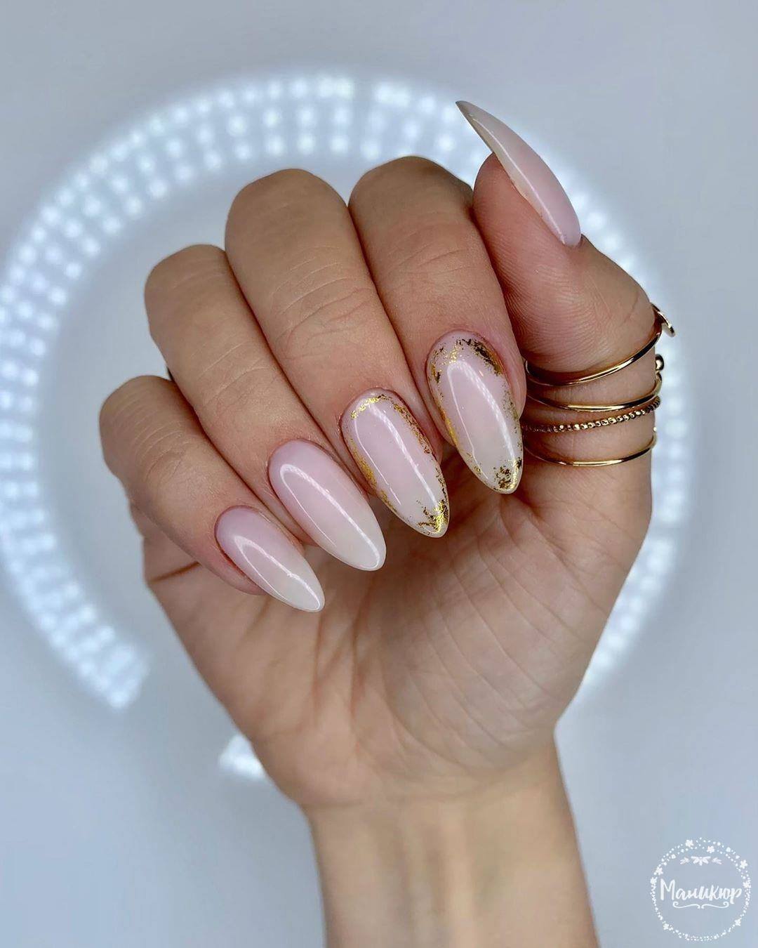 Для создания молочного маникюра дизайнеры советуют не останавливаться только на монохроме, хотя этот вариант считается наиболее популярным и смотрится вполне самодостаточно. Среди топовых идей потрясающие вариации французского дизайна, молочный маникюр в стиле «разные ручки», мраморный нейл-дизайн и многие другие решения, которые чудесно сочетаются с блёстками. Также стоит отметить, что получить желаемый молочный оттенок можно несколькими способами. Это может быть готовый лак или специальная камуфлирующая база. При этом трендовое покрытие может быть как полупрозрачным, так и ложиться на ногтевые пластины плотным молочным оттенком.