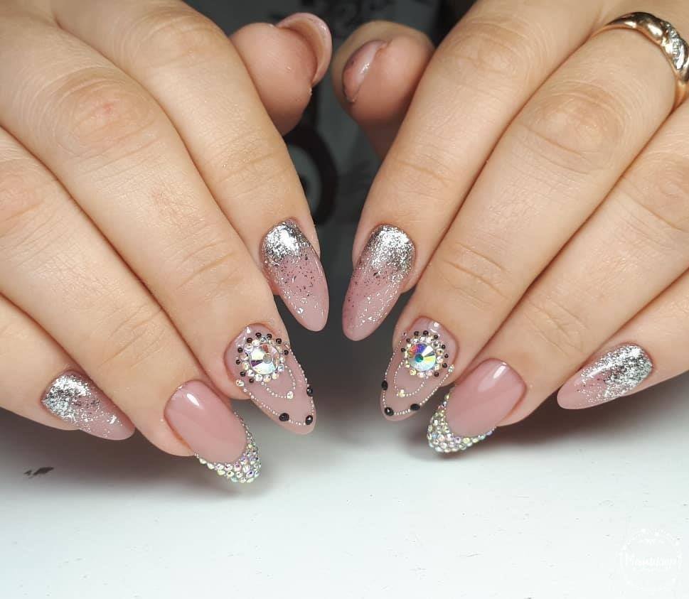 Качественный эксклюзивный маникюр с блестящими элементами стоит дорого.