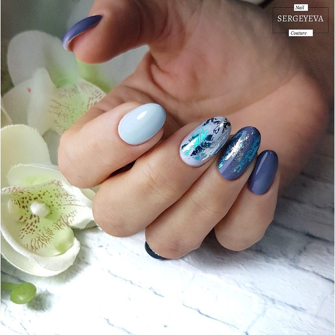 • золотое конфетти – одним из самых значимых и благородных сочетаний в ногтевом этюде считается чёрный с золотом. Угольный глянцевый шеллак или гель-лак в качестве основы идеально принимает на своей поверхности хаотично рассредоточенные среднего размера круглые вырезки из фольги золотистого цвета. Выполненный на длинные ногти такой маникюр смотрится шикарно под нарядное вечернее платье чёрного цвета с аксессуарами в золотом покрытии – общий образ выглядит непревзойдённо;• кристальный маникюр – выложенная на тёмно-фиолетовом фоне мерцающая светло-сиреневая фольга в виде рубленных сколов битого стекла великолепно смотрится в общей композиции данного совмещения двух разных цветов одной оттеночной группы. Эффект битого стекла пленит своим шармом, напоминая нечто вроде кристаллизованной сиреневой поверхности ноготков. Данный ногтевой дизайн служит превосходной основой для создания чарующего образа;• хлопья юки – шикарное новшество современности, представляющее собой не что иное, как слюду в её тончайшем исполнении в виде разноцветных голографических вырезок. Нанесенные хлопья юки на короткие ногти отлично сочетаются с вечерним одеянием красотки либо обыденным её повседневным нарядом, дополненным бижутерией в тон ногтевому фону – это подчеркнёт лёгкую элегантность образа и обоснует яркость блеска такого нейл-арта.