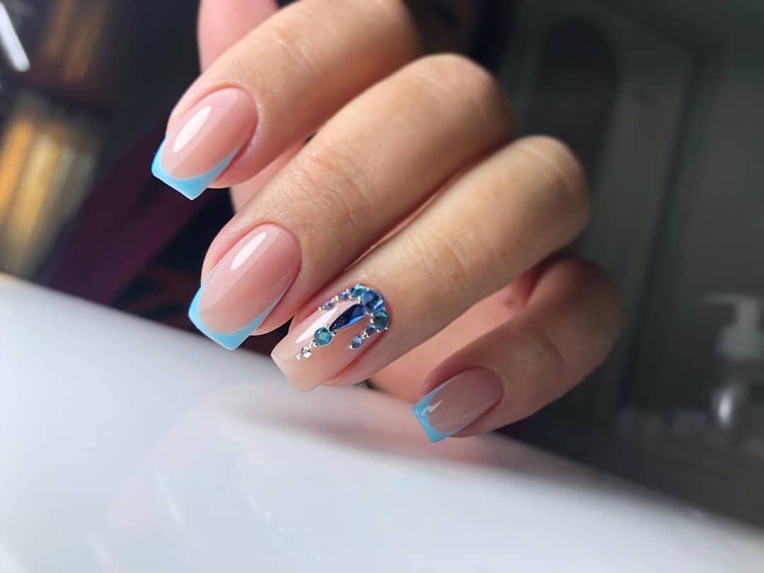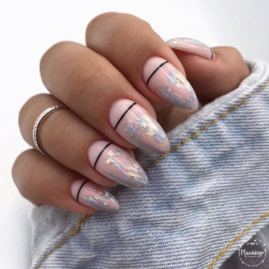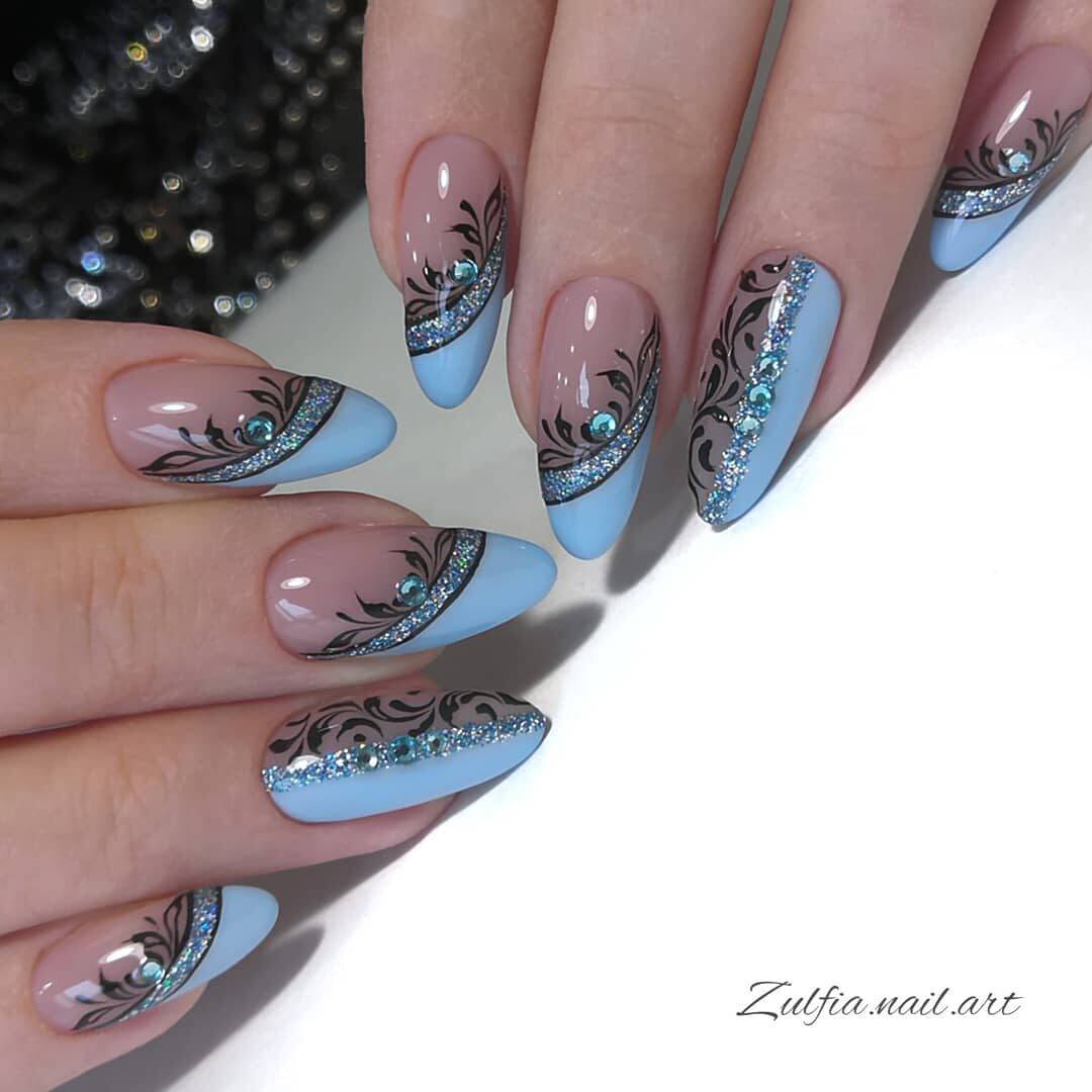 - Вариант третий: граница между лаком двух цветов подчеркивается блестящими элементами;